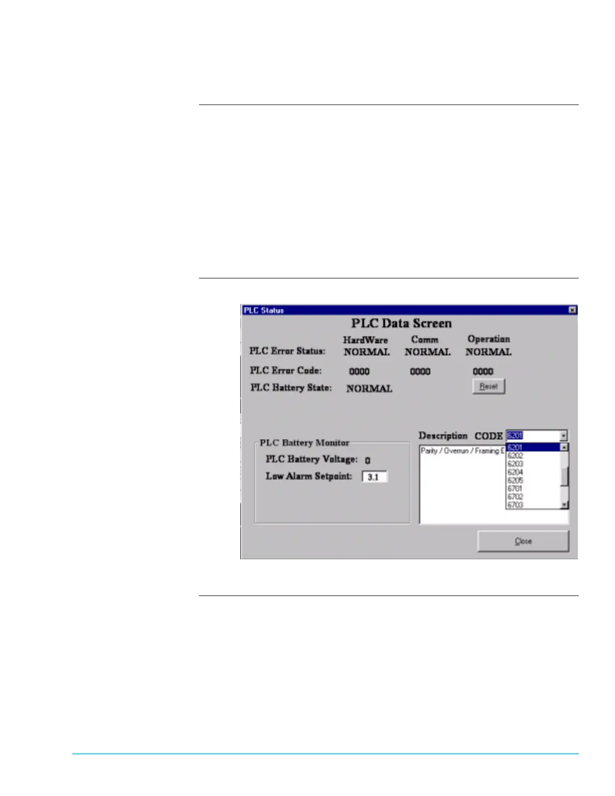Description The PLC Status Window monitors the status of the PLC hardware,