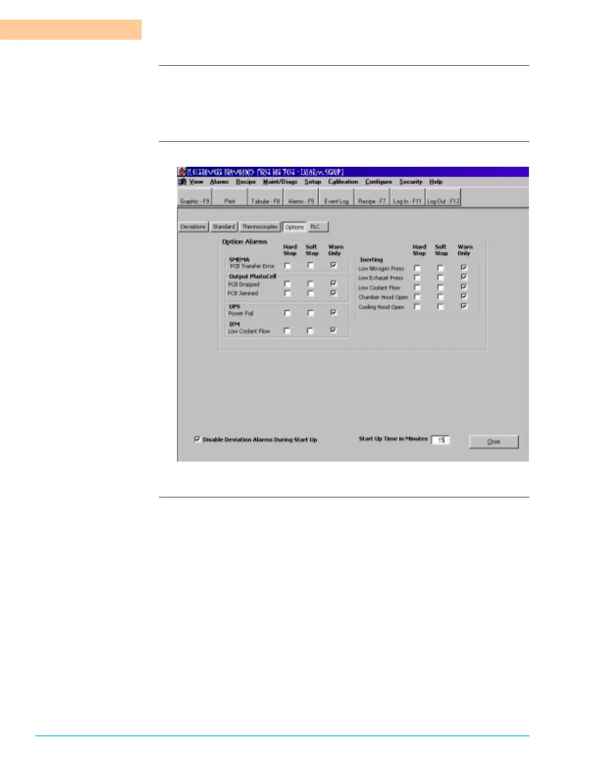 If Disable Deviation Alarms During Startup is selected, the deviation alarms for