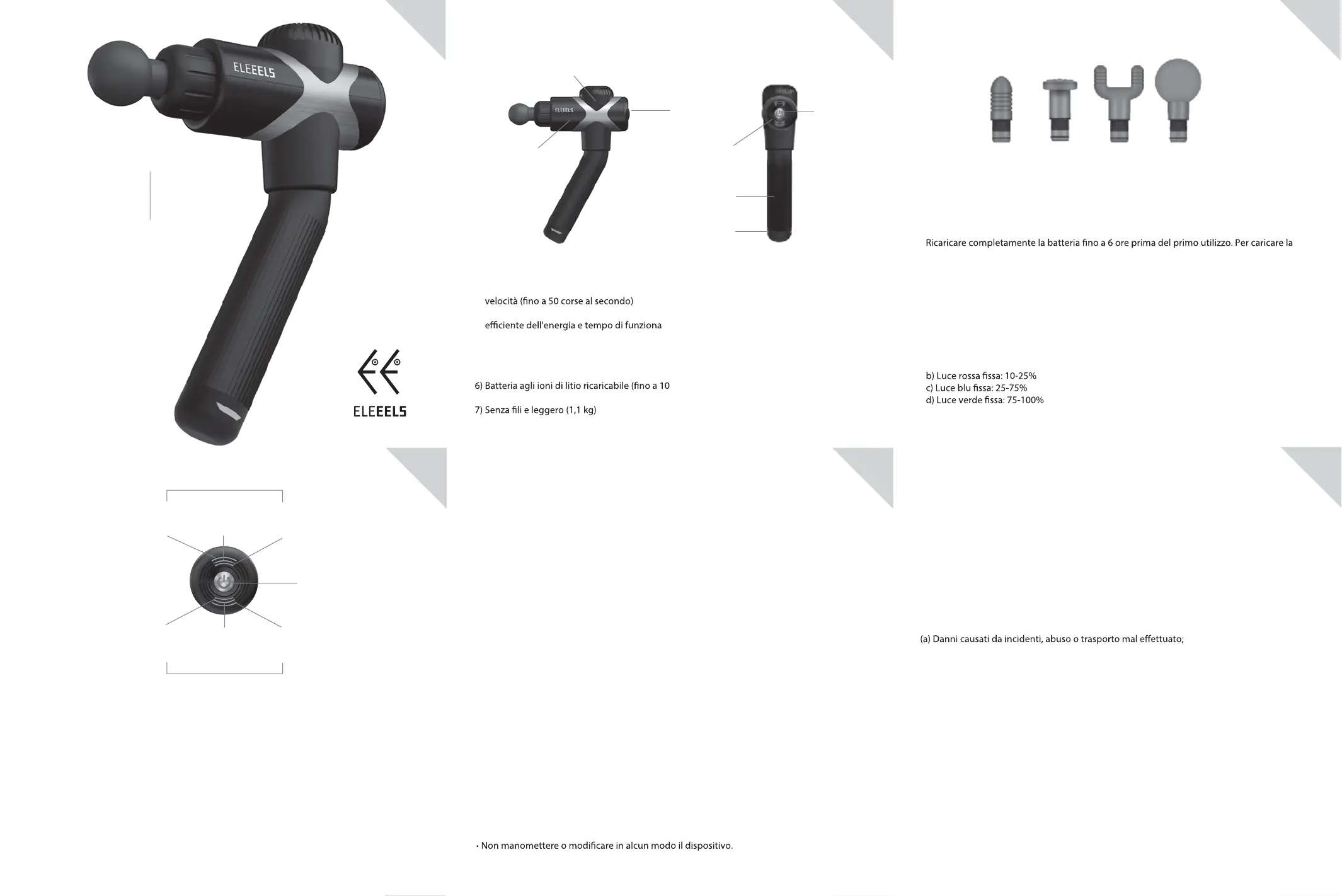 • Utilizzare solo e il cavo USB di tipo C dati in dotazione dalla ELEEELS per la ricarica.