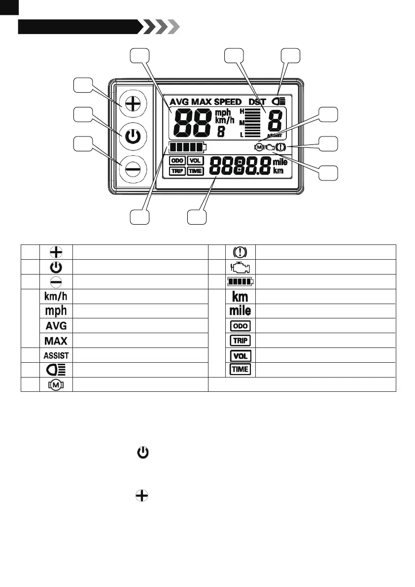 Drücken Sie lange auf die Taste , um die LCD-Hintergrundbeleuchtung und das Fahrradlicht ein-