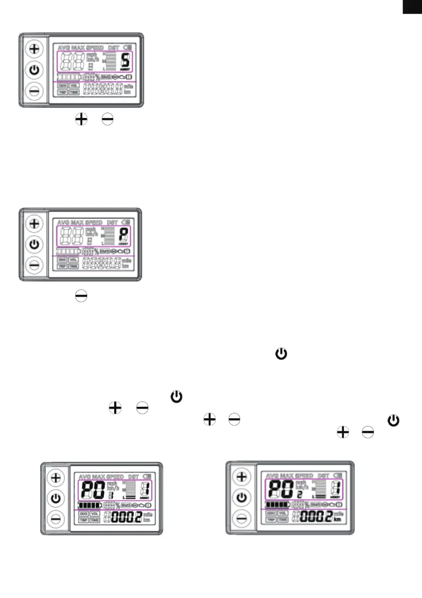 Pulse el botón hasta que la zona del modo de velocidad muestre "P". Entonces la bicicleta se