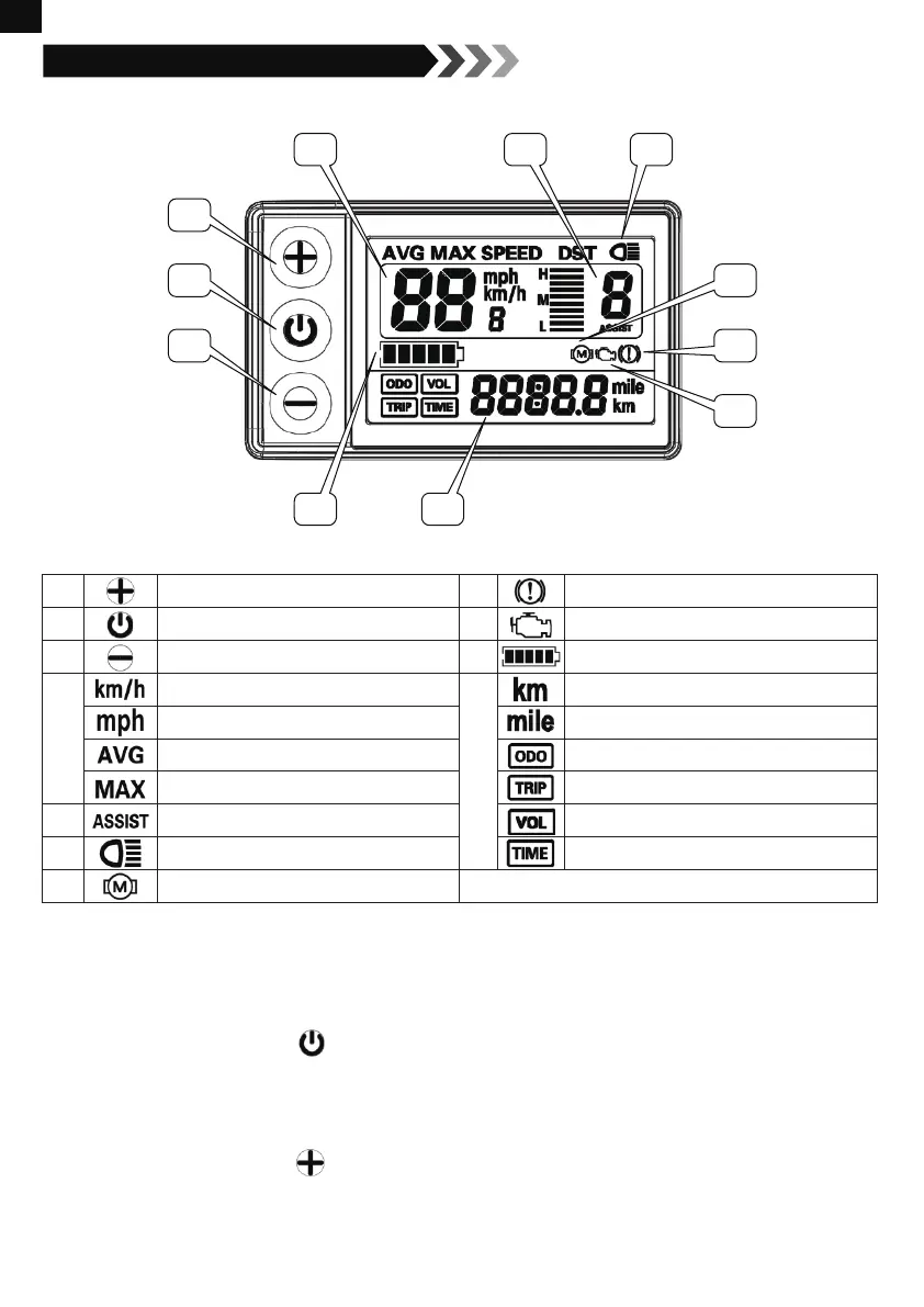 Naciśnij i przytrzymaj przycisk , aby włączyć/wyłączyć podświetlenie LCD i światła.