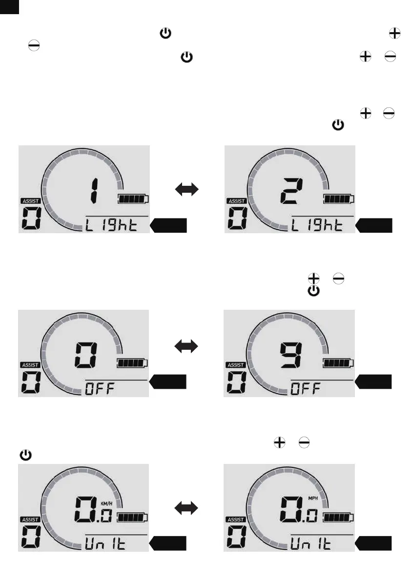 Accédez au menu "Light" et réglez l'intensité du rétroéclairage de l'écran LCD en appuyant sur ou .