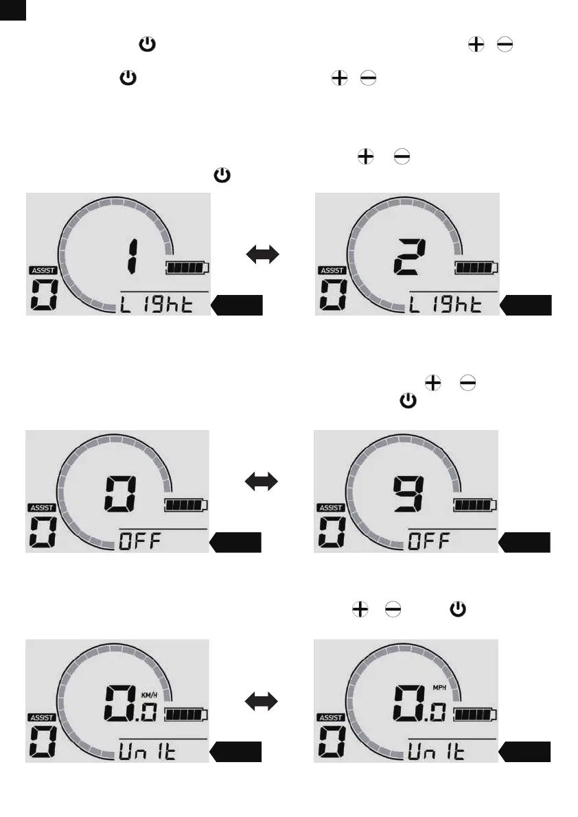 Vaya al menú «Light» y ajuste la luz de la pantalla LCD pulsando o . El nivel 1 es el más oscuro