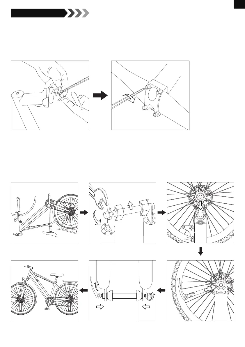 A) Put the bike upside down and remove the temporary protected bar by loosing the nut on it.