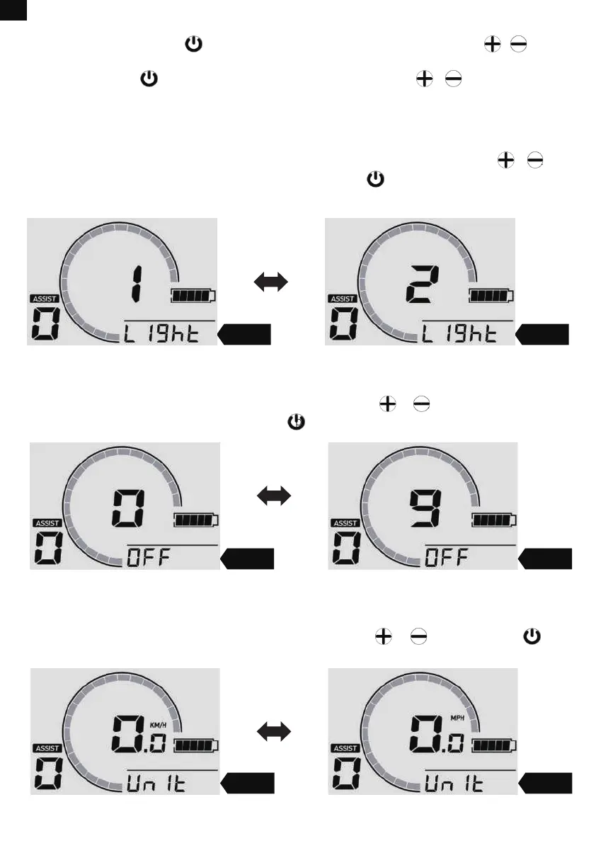 Entrare nel menu "Light" e regolare l'illuminazione della retroilluminazione LCD premendo o . Il