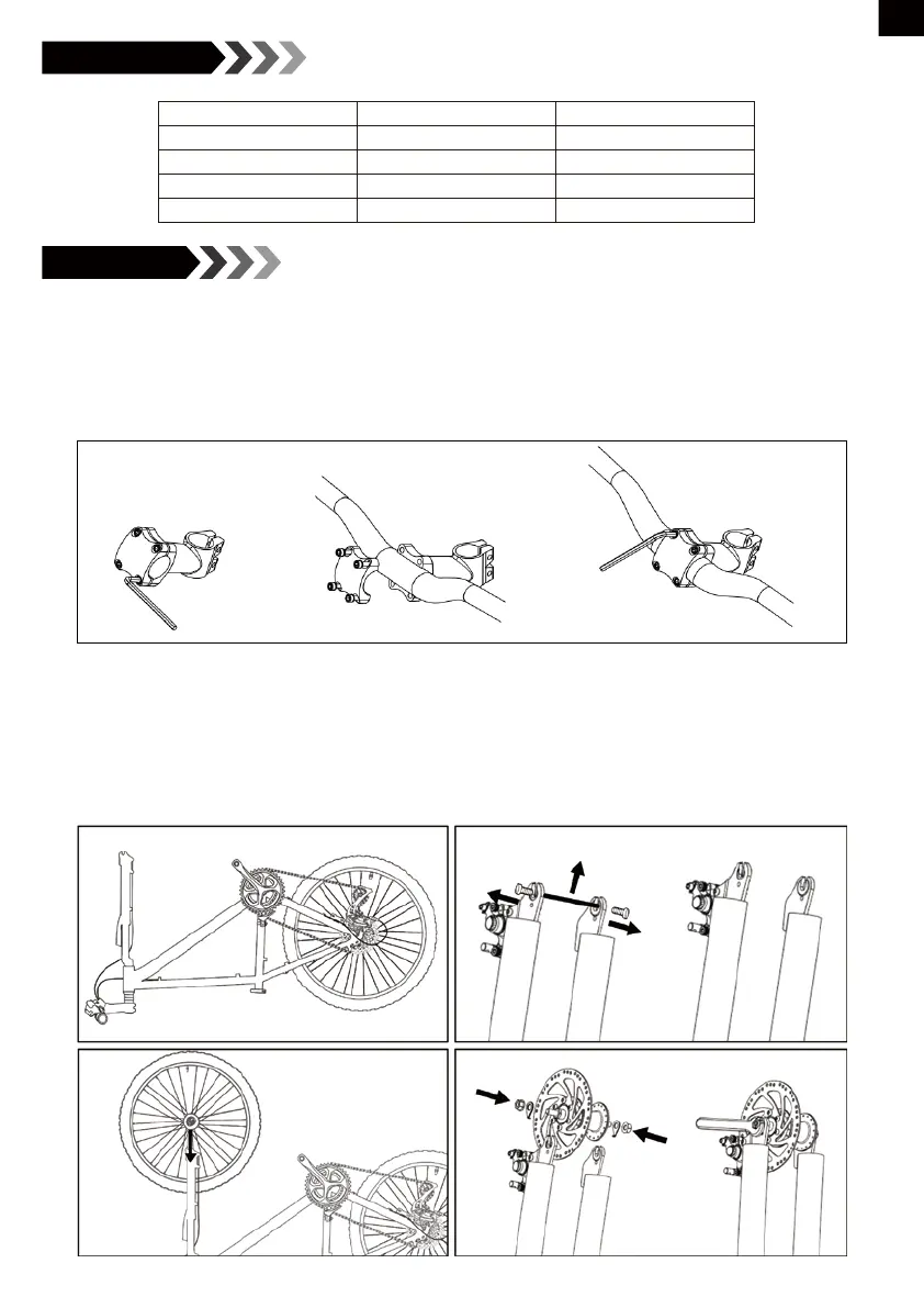 C) Loosen the nuts on the front wheel and insert the front wheel between the fork blades so that the
