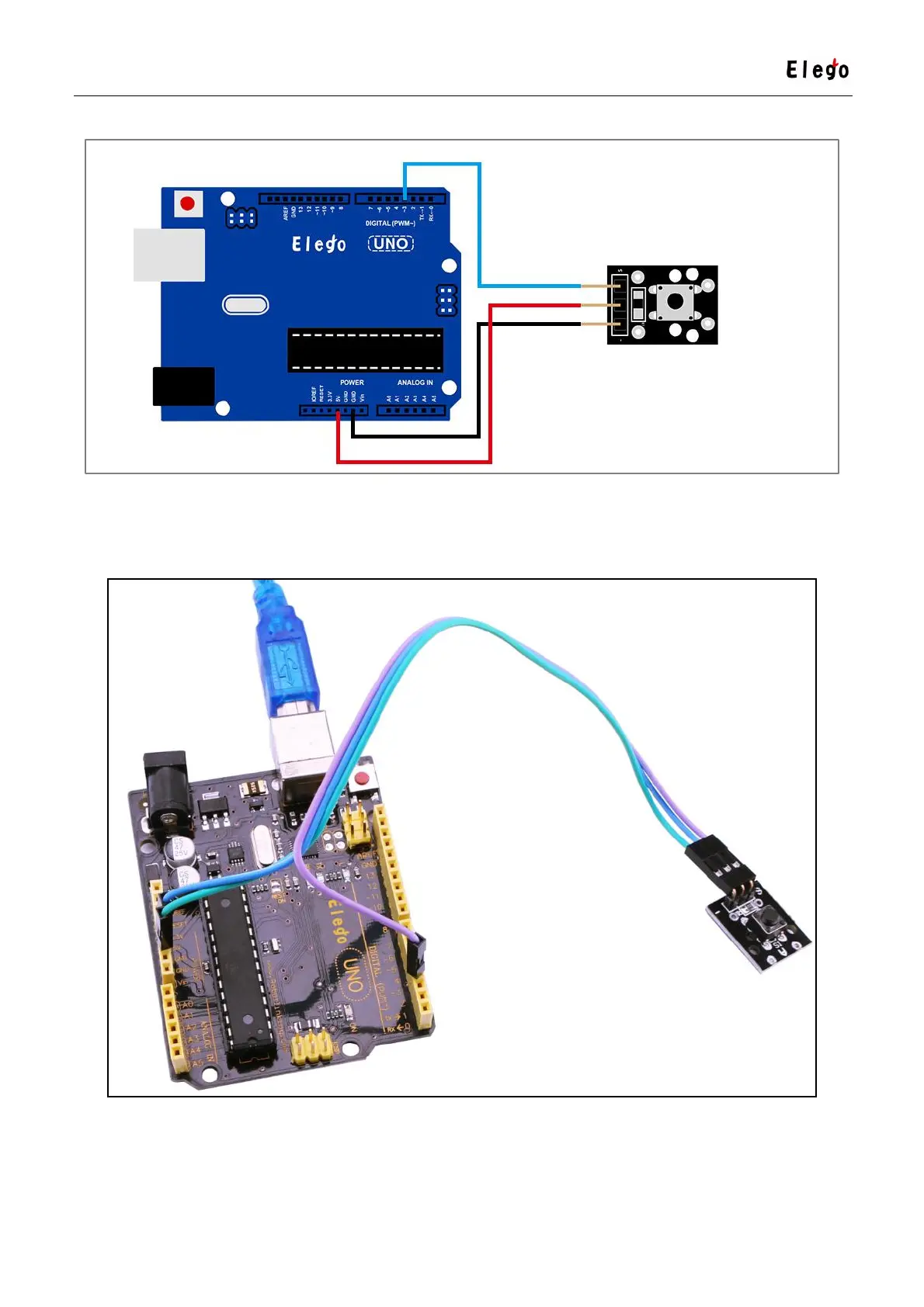 Connect the circuit as above and upload the program. Then push the button, you can see