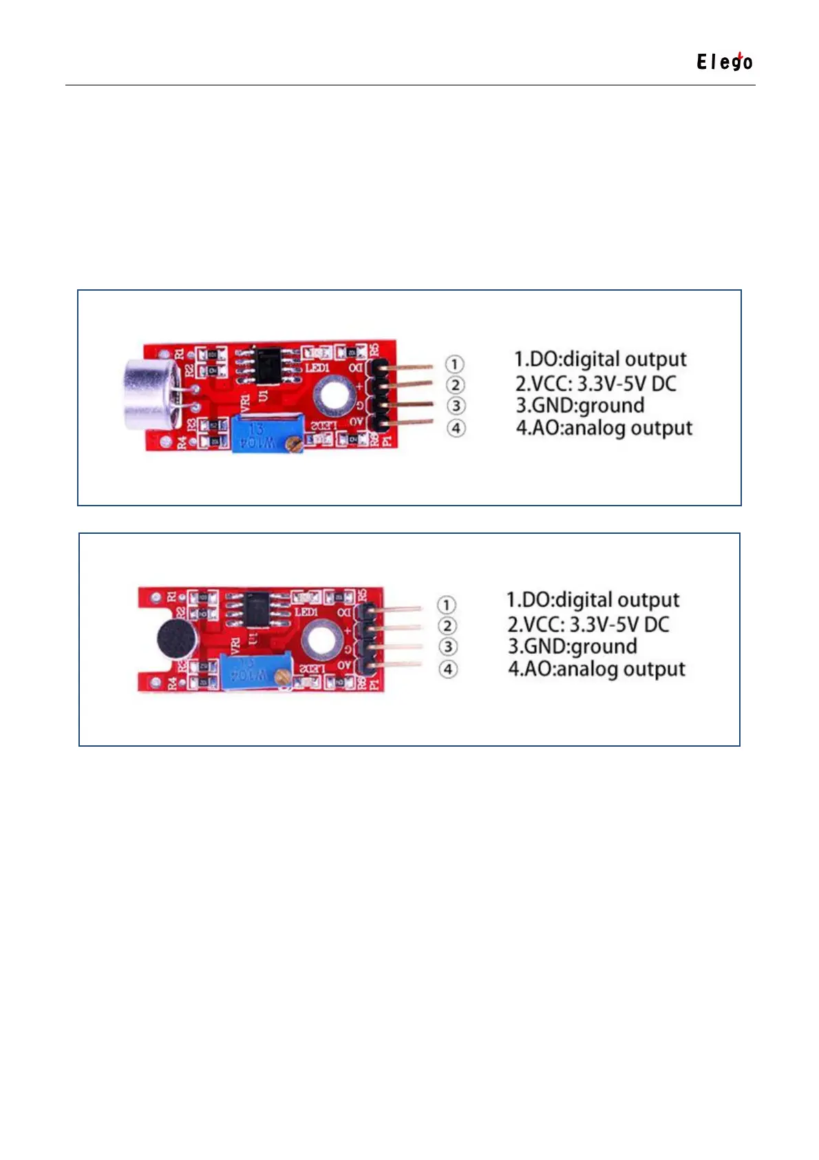 Elego 37 SENSOR KIT - Lesson 13 BIG SOUND SENSOR MODULE AND SMALL SOUND SENSOR MODULE; Sound Sensor Introduction and Features