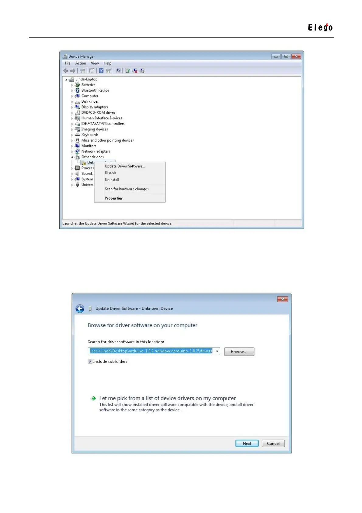 ‘Browse my computer for driver software’. Select the option to browse and navigate to the