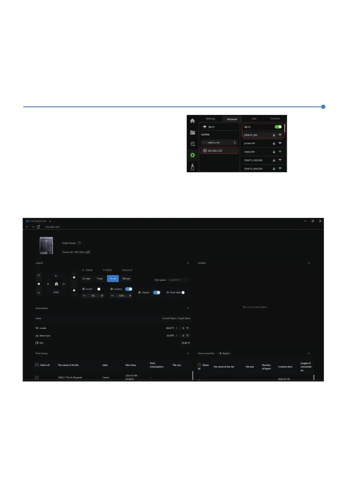 address bar to access the backend management. Utilize the web interface to monitor the printing progress and pause/stop the print as