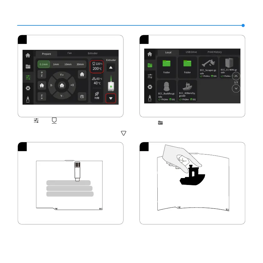 1. Click【 】- 【 】to set the nozzle temperature to