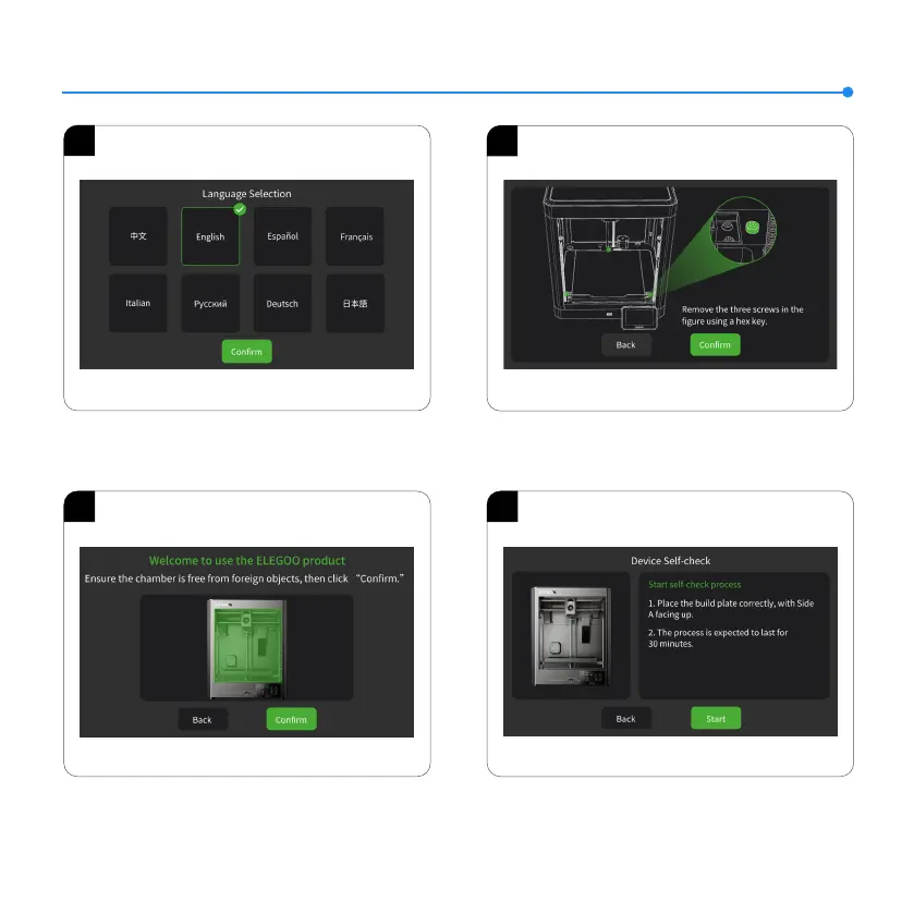 1. 言語選択 2. 画面上の指示に従って、ビルドプラットフォームの3本の固定