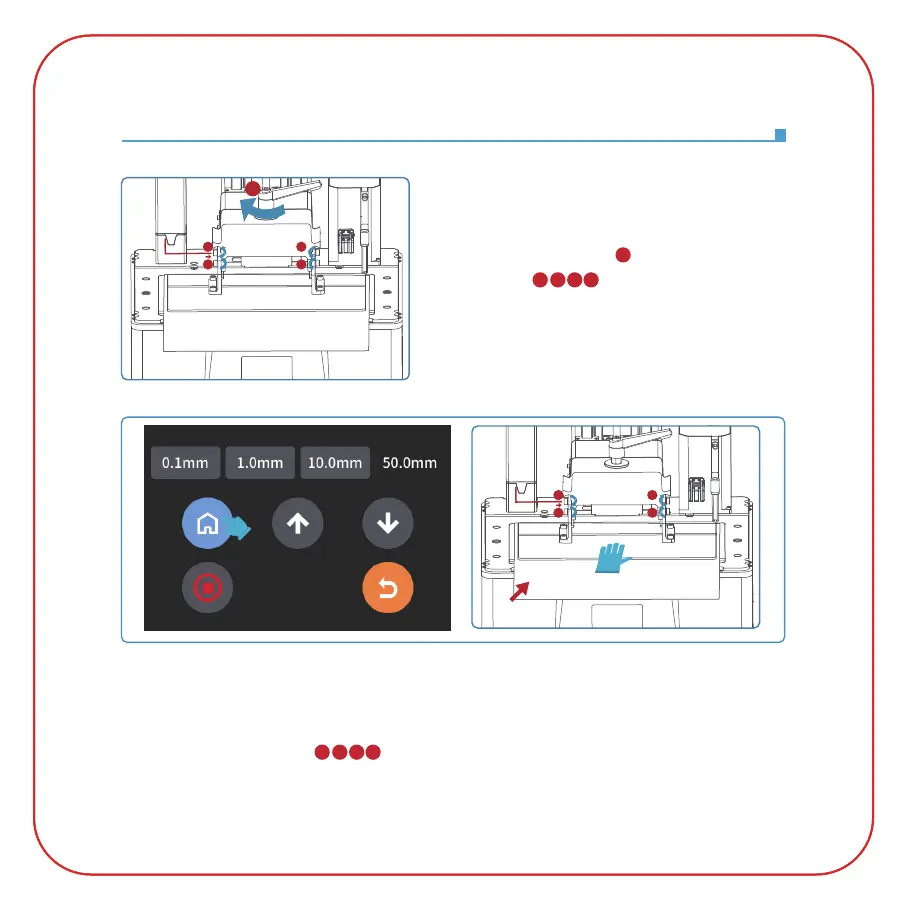 (See Picture 7). After the printer stops moving, press the top of the build plate with one hand, and