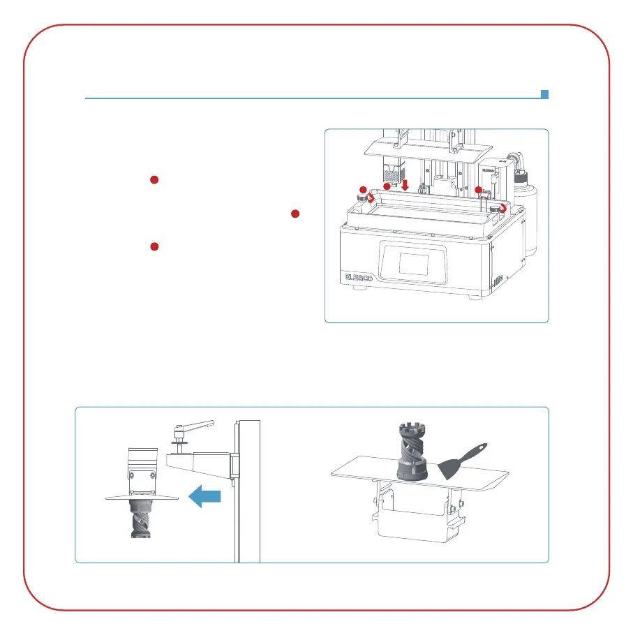 After the printing is completed, wait until the resin on the build plate stops dripping, then loosen