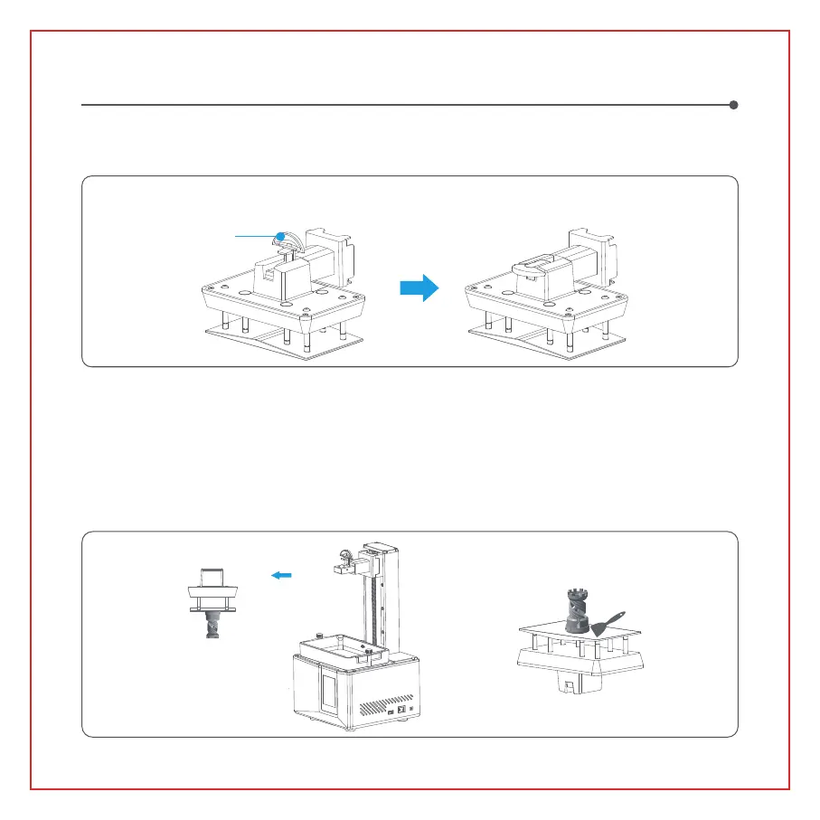plataforma de impresión al bloque de conexión (la plataforma de impresión es capaz de autonivelarse y está lista para