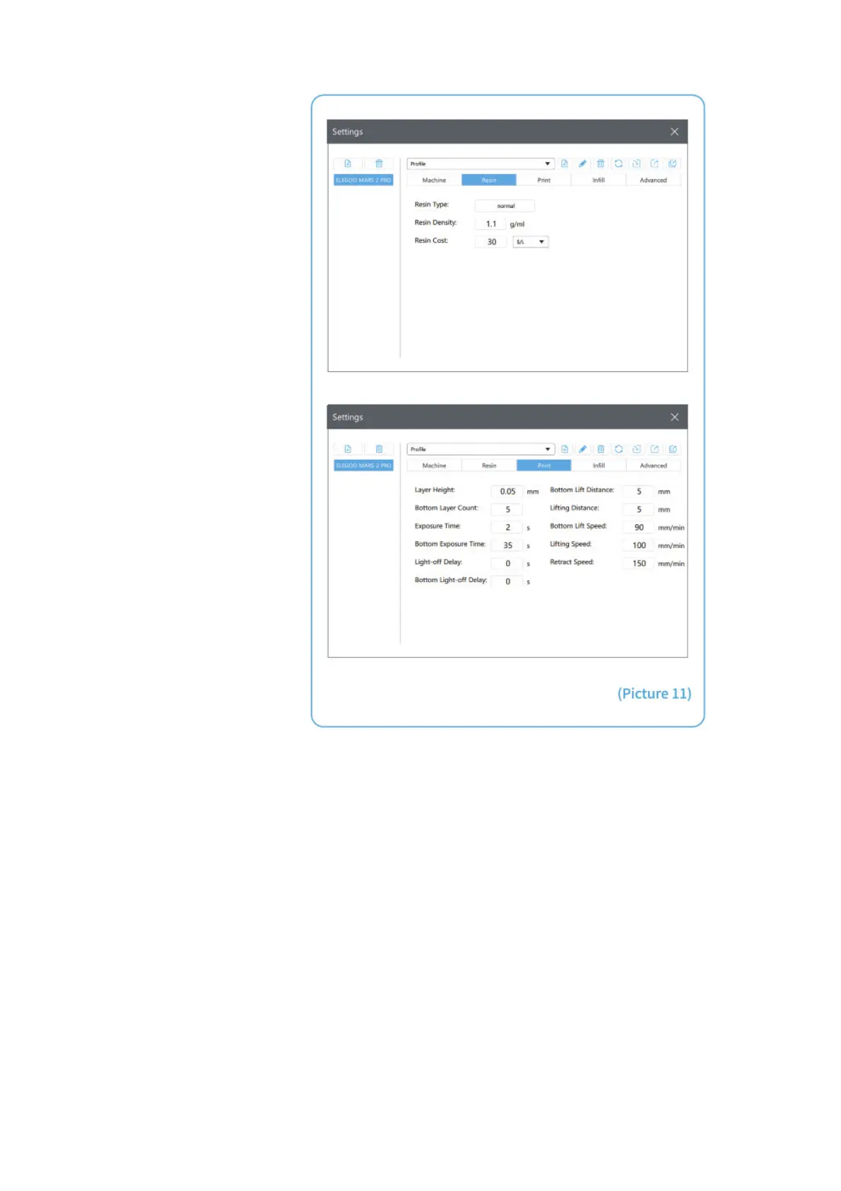 3.3 Resin Parameter (See Picture 11)