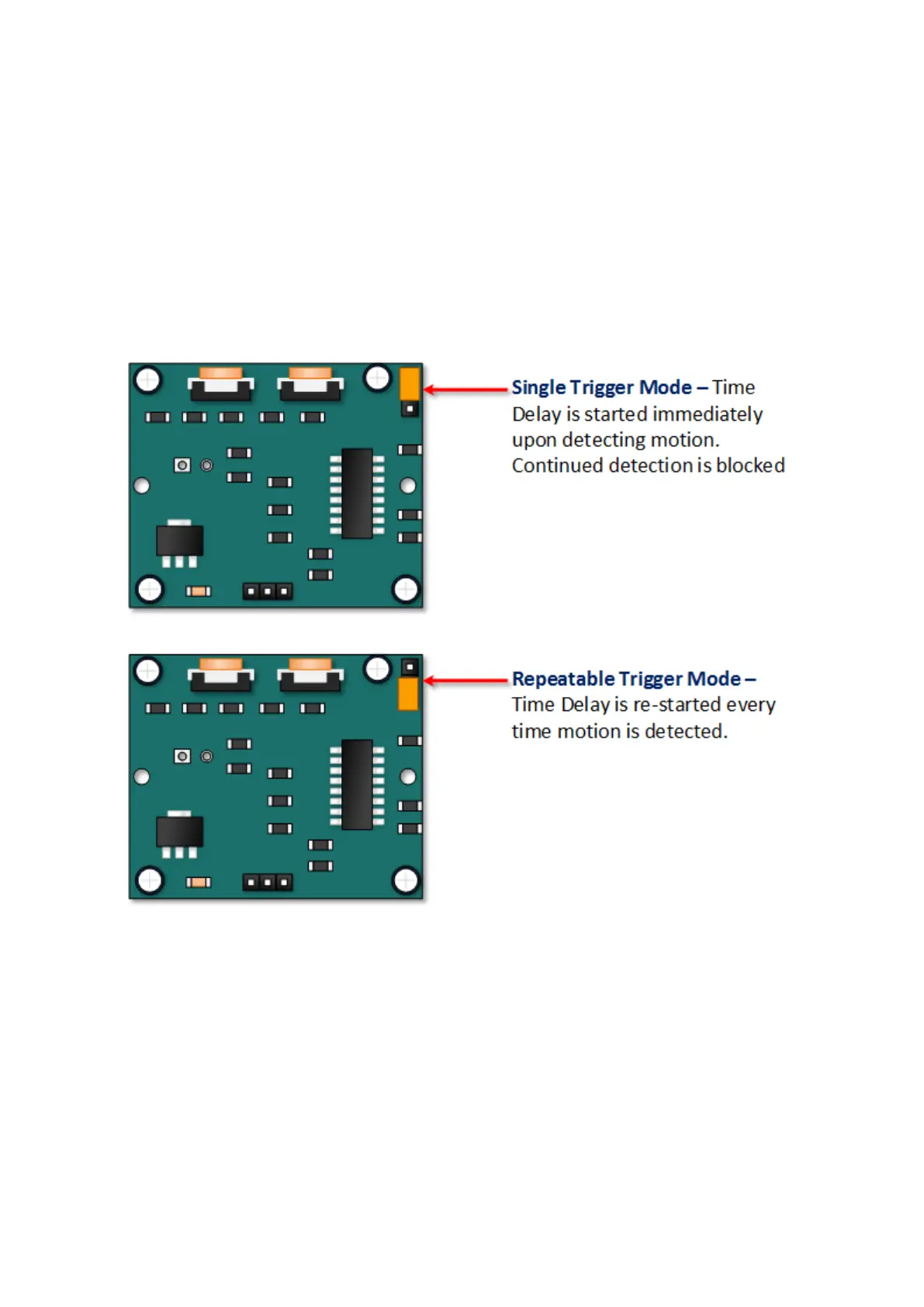 SINGLE TRIGGER – The time delay begins immediately when motion is first detected.