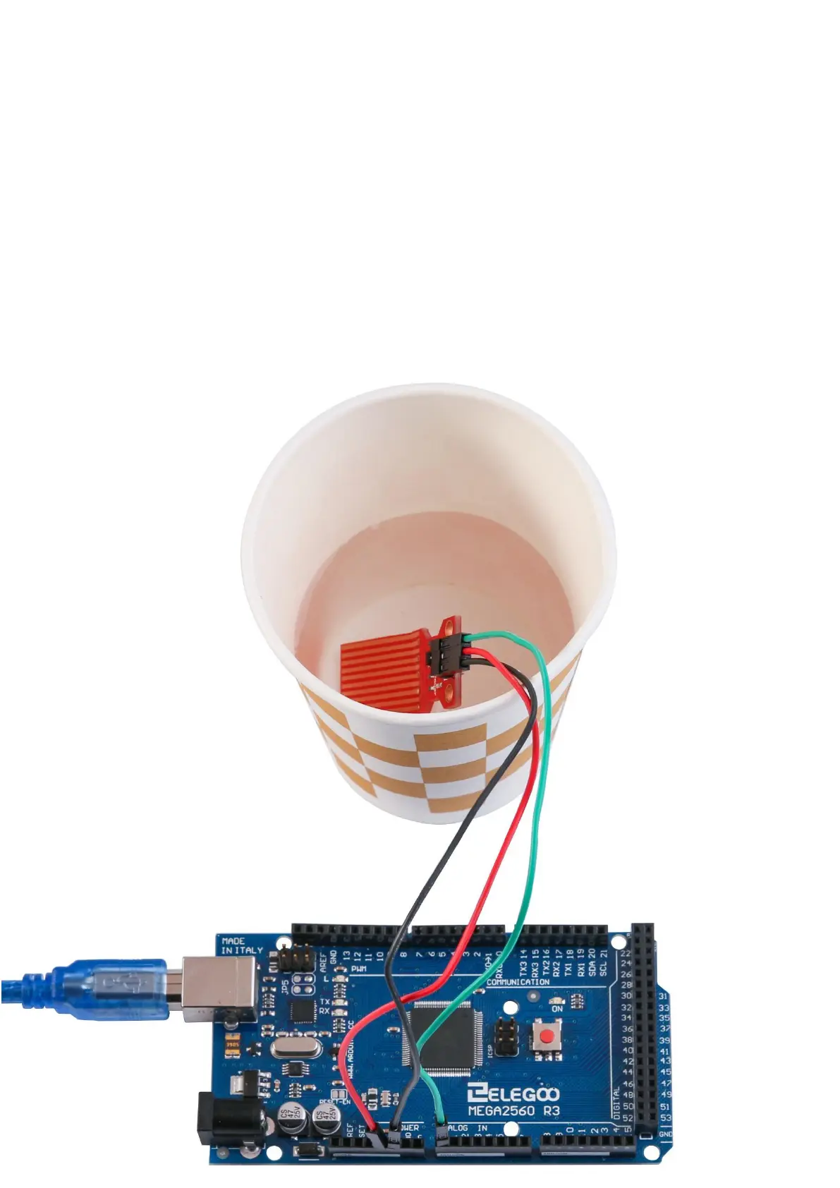 After wiring, please open the program in the code folder- Lesson 18 Water Level
