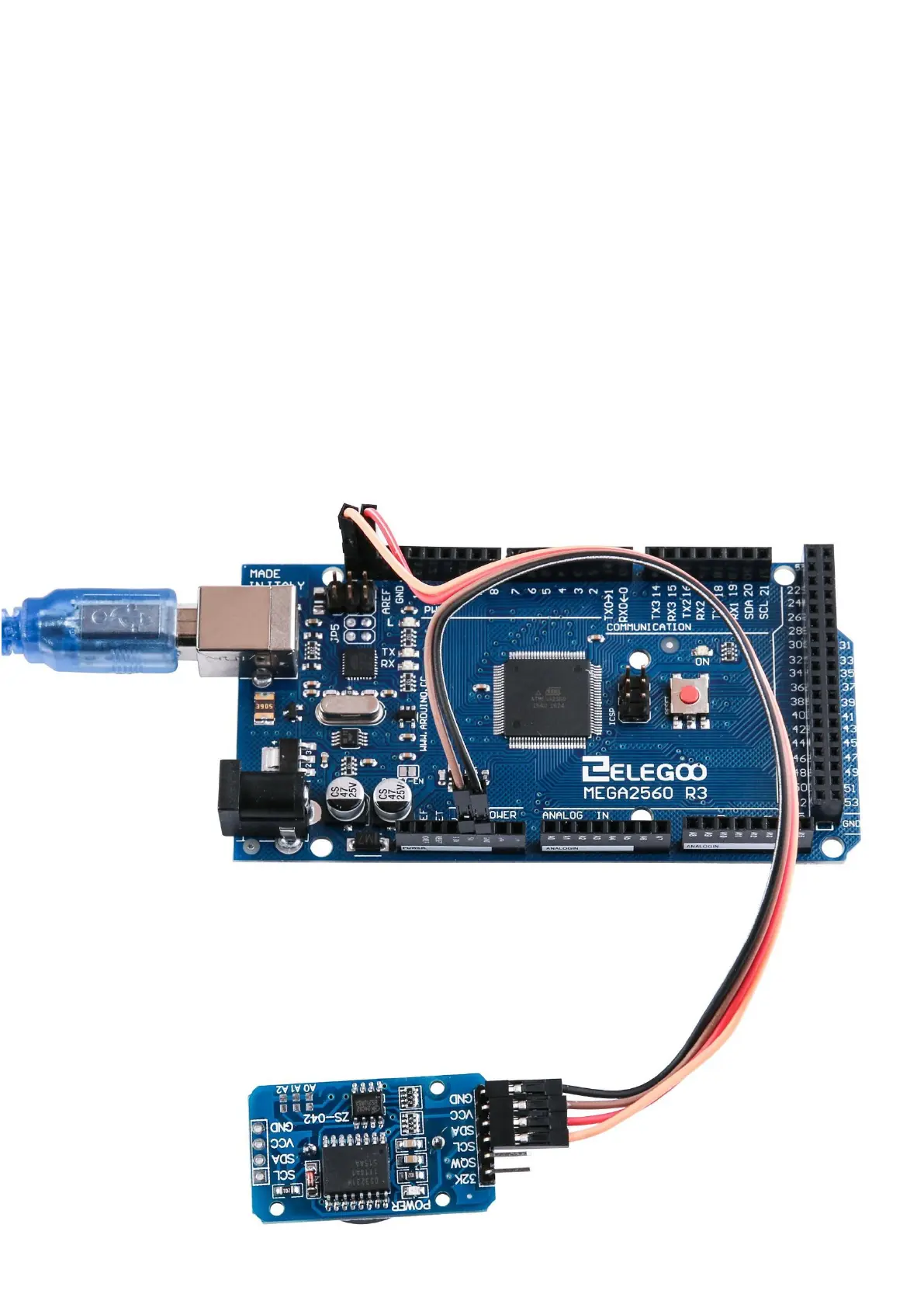 MEGA2560 R3 board SCL port, and the SDA pin into the SDA port. The VCC pin plugs
