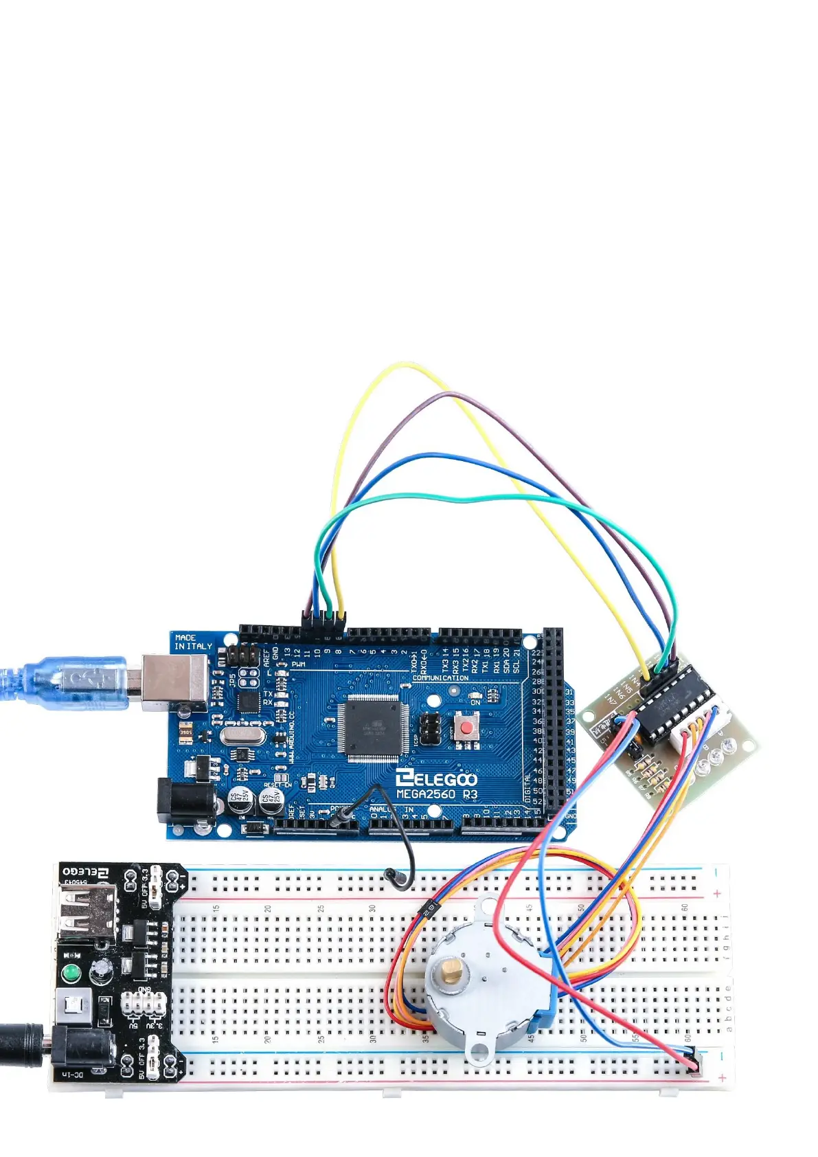 We connect the Ground from to MEGA2560 to the Stepper motor.