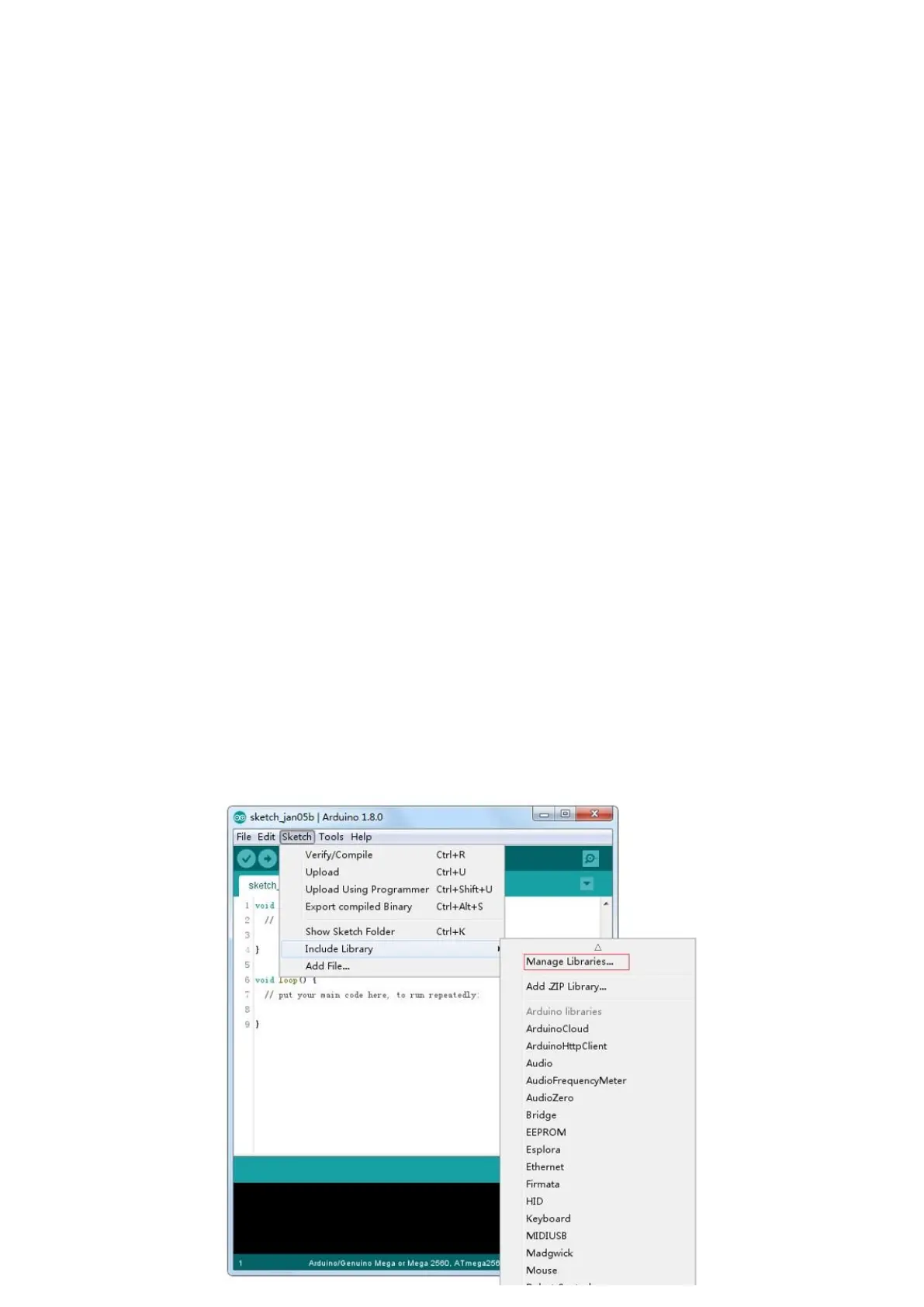 (available from IDE version 1.8.0). Open the IDE and click to the "Sketch" menu and