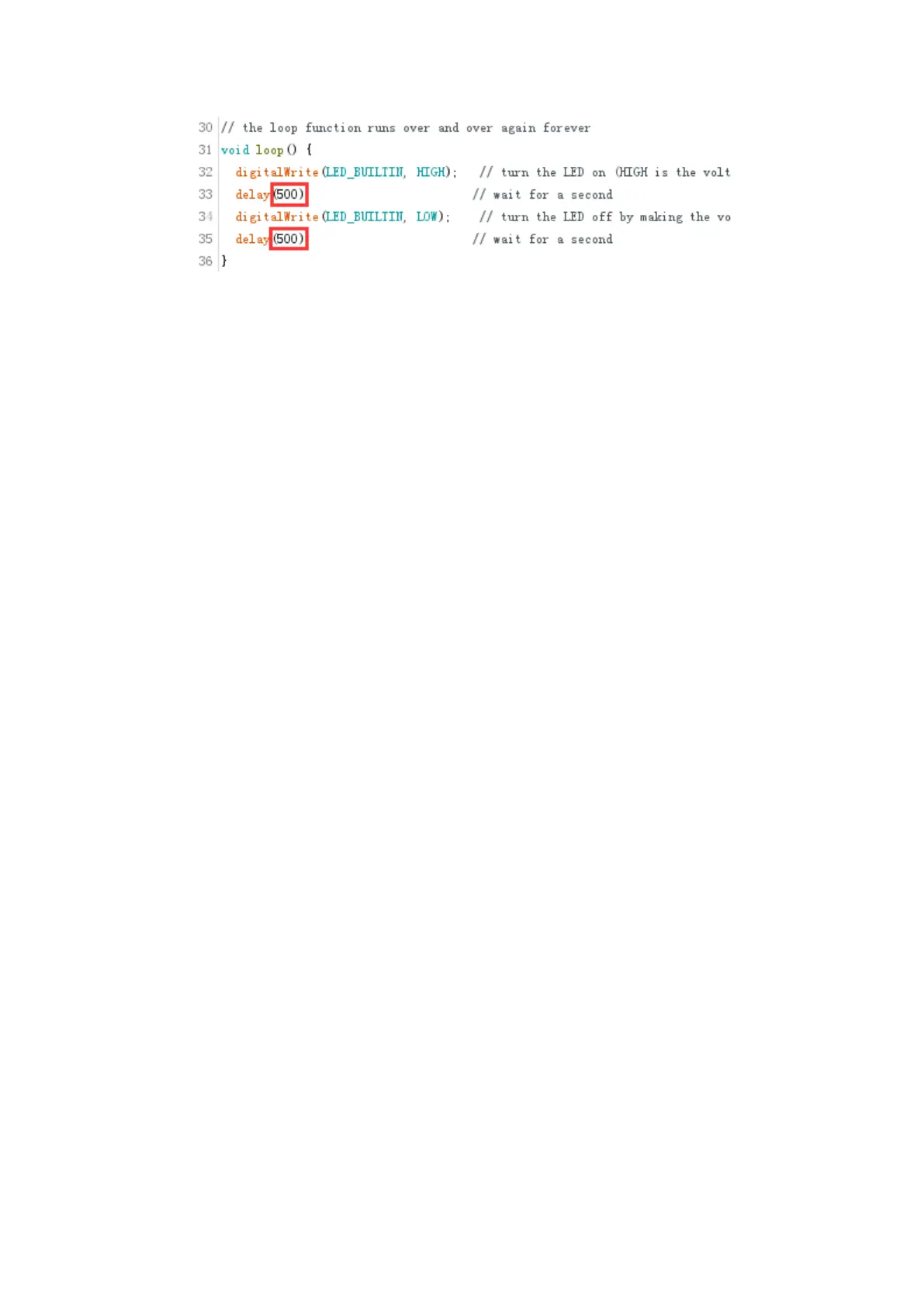 This delay period is in milliseconds, so if you want the LED to blink twice as fast,