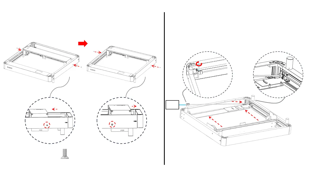 ① Durante l’installazione, appoggiare l’assieme dell’asse X alla