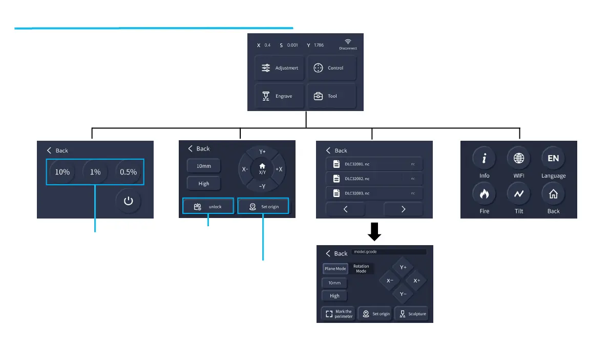 Muove la testa del laser alla
