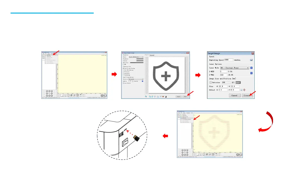 Questa macchina è compatibile con diversi programmi sul mercato, come ad esempio LaserGRBL, LighBurn e PHECDA APP. Queste istruzioni operative sono basate sul