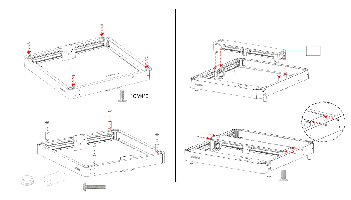 Ø Setzen Sie zuerst alle Schrauben der Unterseite in