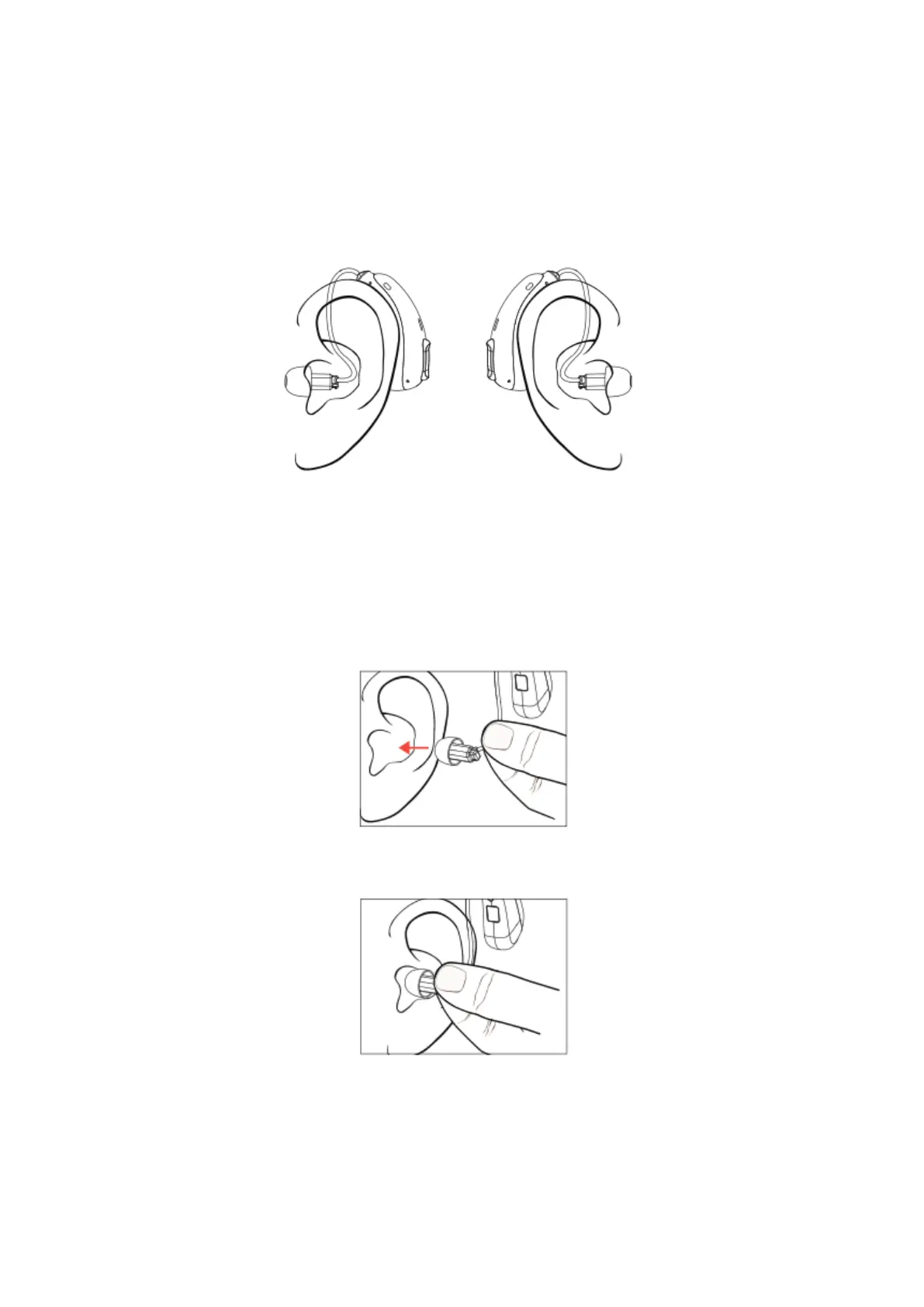 (2) Align the ear cap with the opening of the ear canal, and insert it gently into the ear