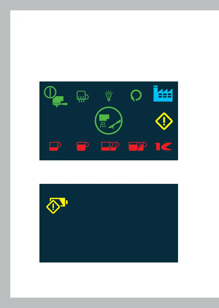 V1 - Operational screen for switching-on coffee dispensing, serious alarms and signalings