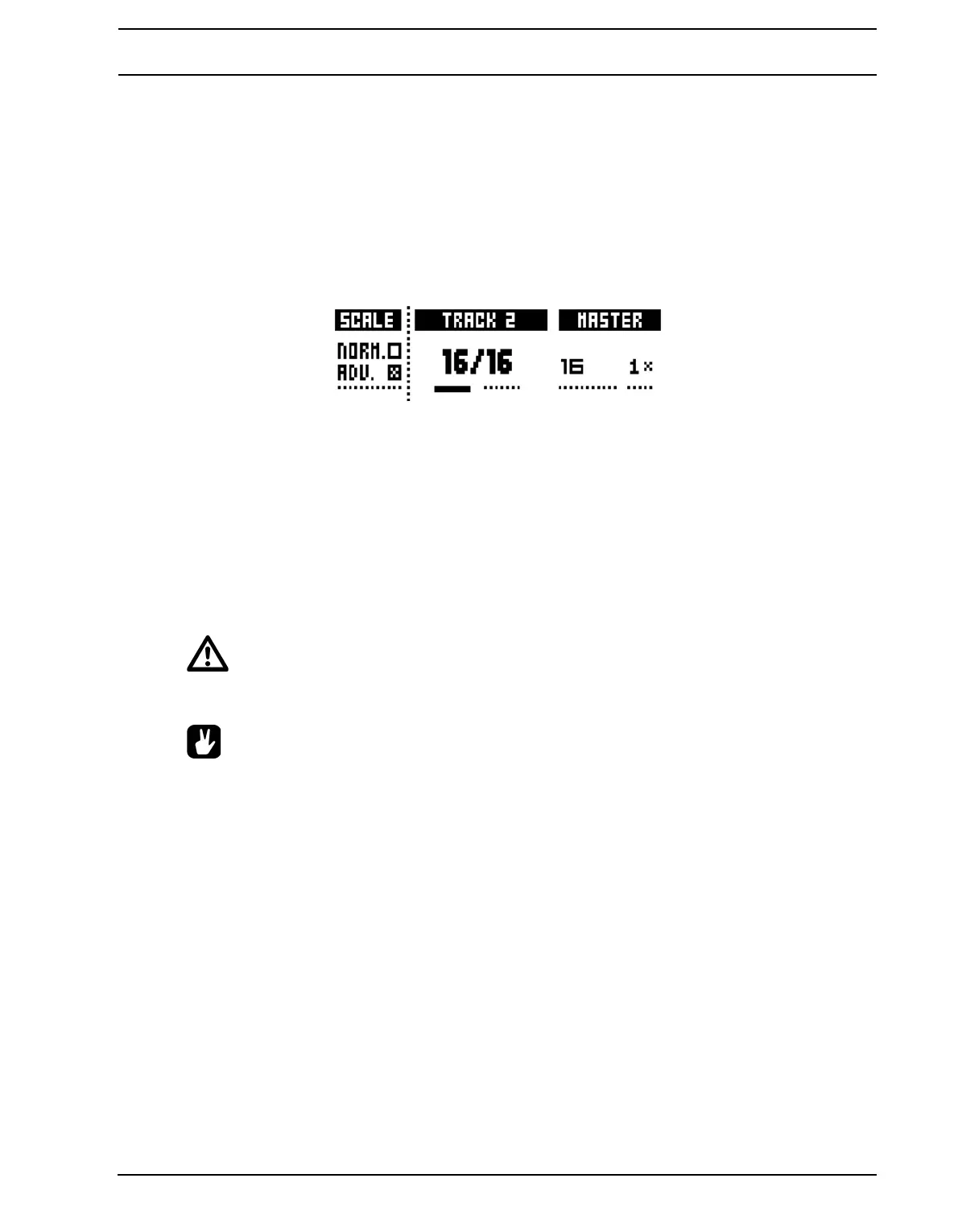 • Press [FUNCTION] + [UP]/[DOWN] to set the MASTER LENGTH in increments of 16.