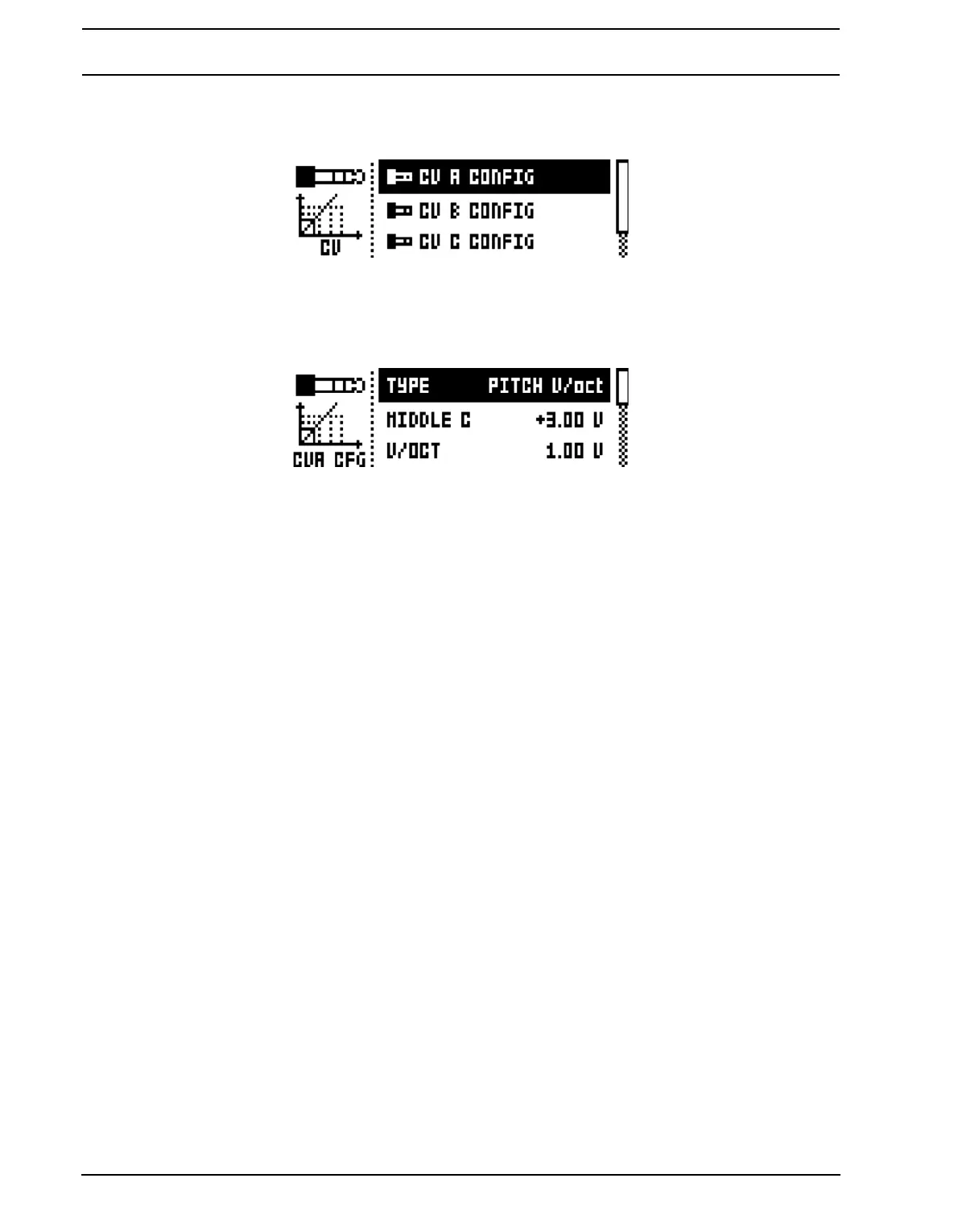 TYPE selects the type of signal that should be sent from the output. PITCH V/OCT, PITCH