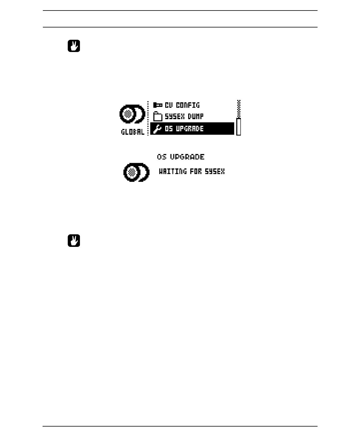 For the transfer to be possible, the device sending the OS syx-file should be connected to the either the MIDI IN