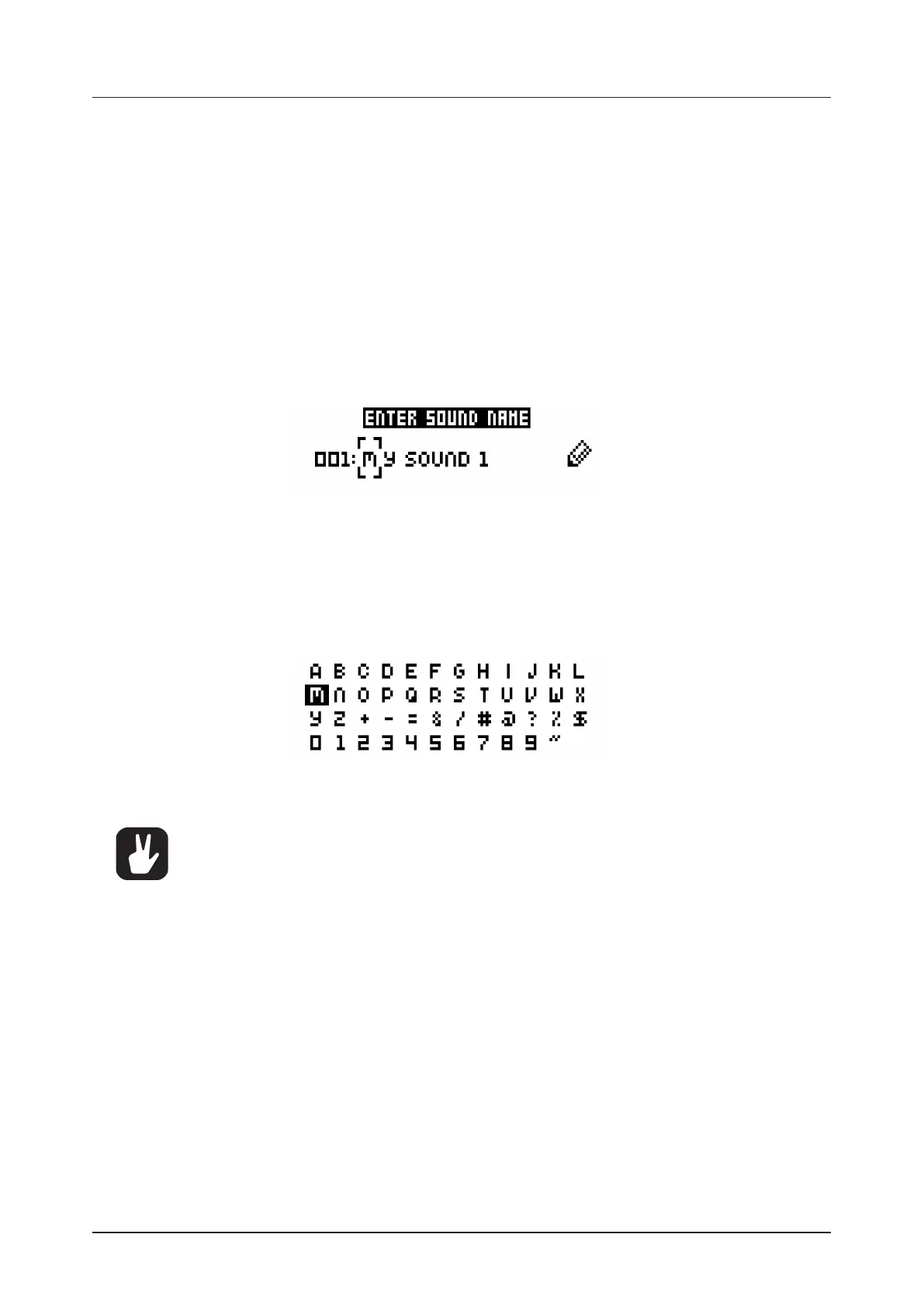 The naming method is identical for the various naming situations that appear when kits, Sounds, songs,