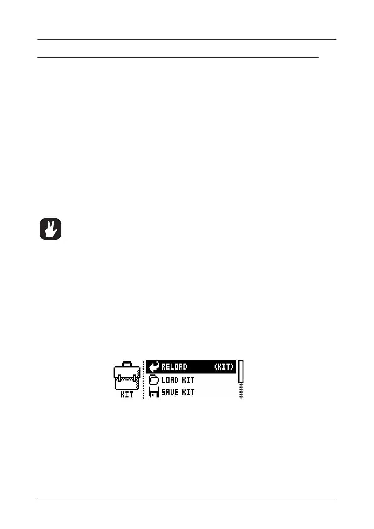 RELOAD KIT will reload either the active kit, reverting it to its saved status or all kits. Using the [LEFT] and