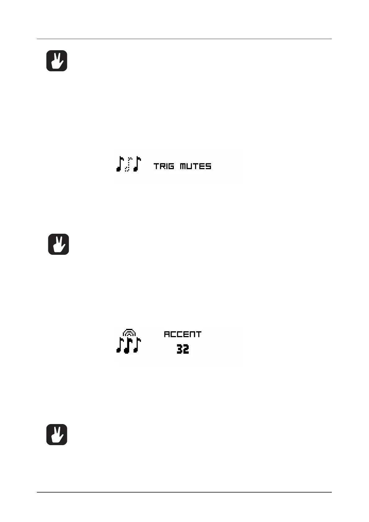 ue by turning the LEVEL knob. The higher the value, the more accentuation will be added to accent trigs.