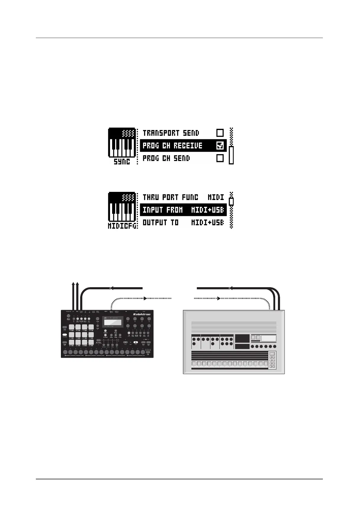 2. Make sure the Analog machines are MIDI slaved to the Octatrack using two standard MIDI cables.