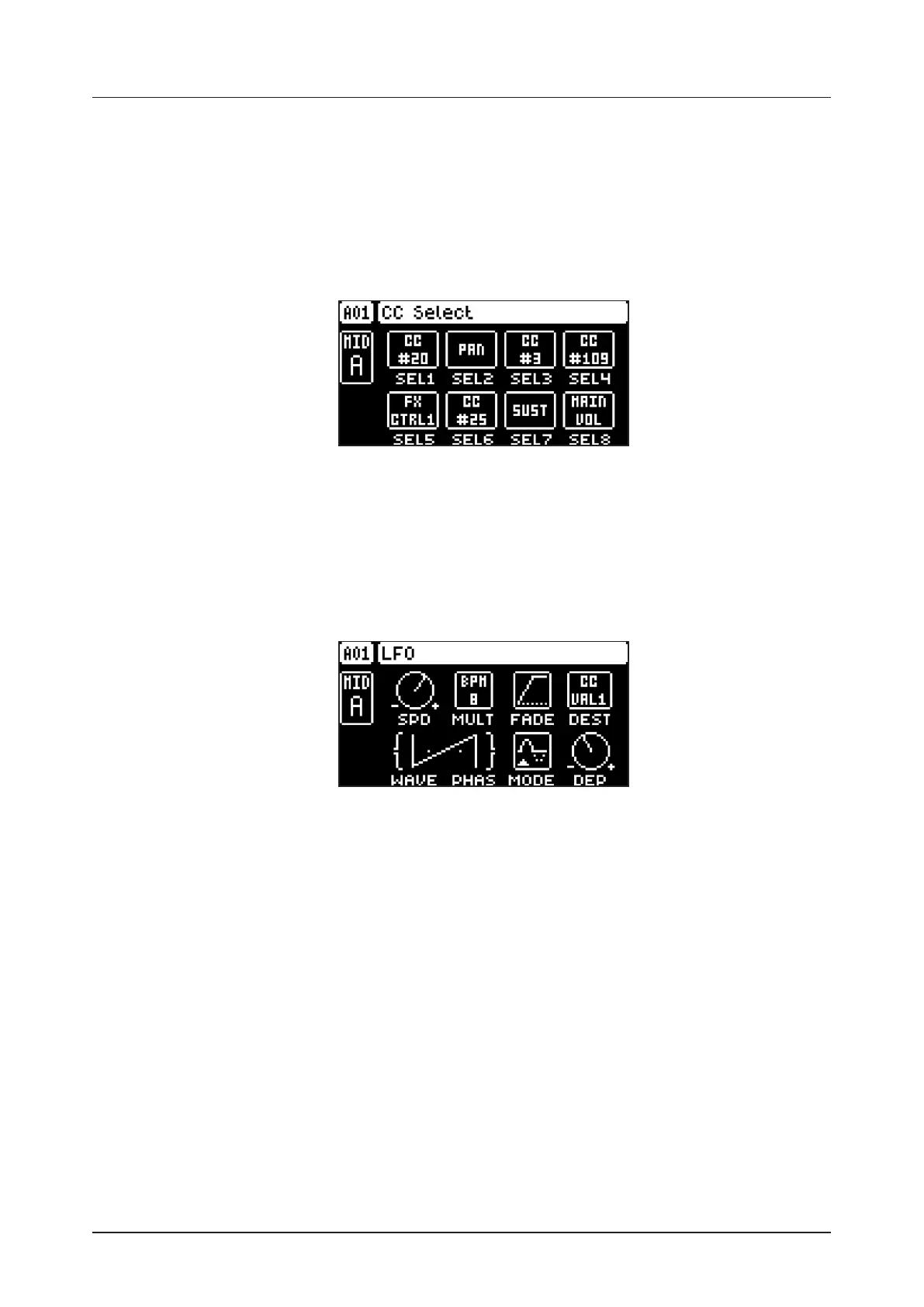 (CC SELECT) page. These parameters default value is OFF. Press [TRIG] + DATA ENTRY knobs to acti-