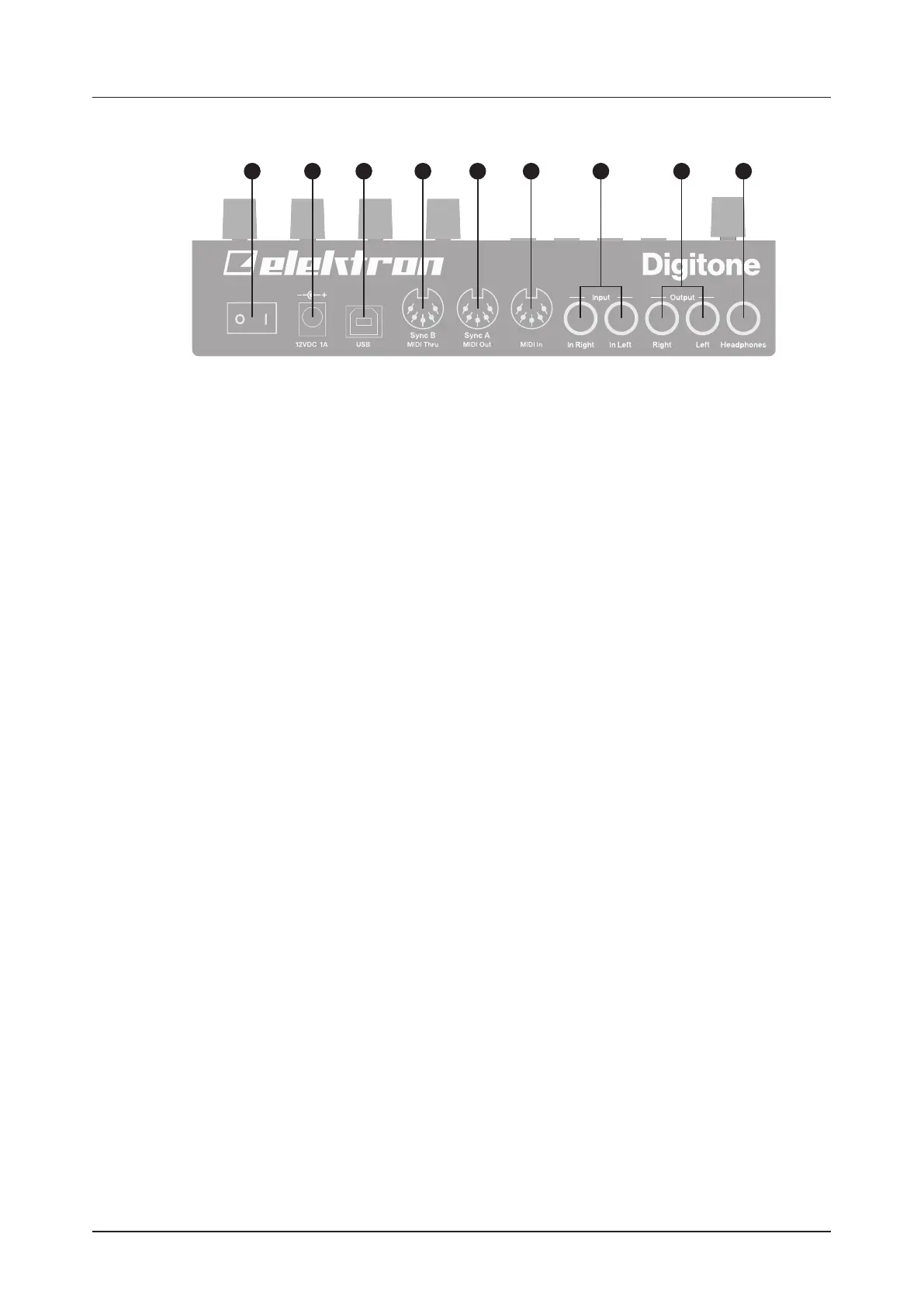 cables. Make sure to switch o all devices before you connect the Digitone to other devices.
