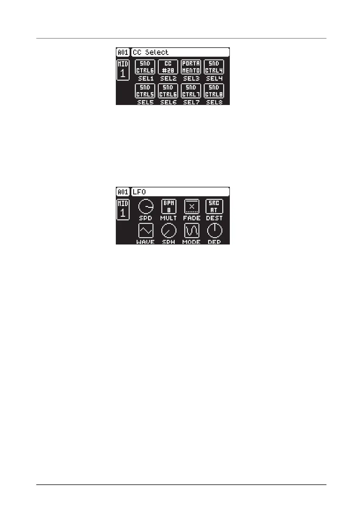 CC 1–8 Select specifies the CC commands whose values you control controlled by the parameters on