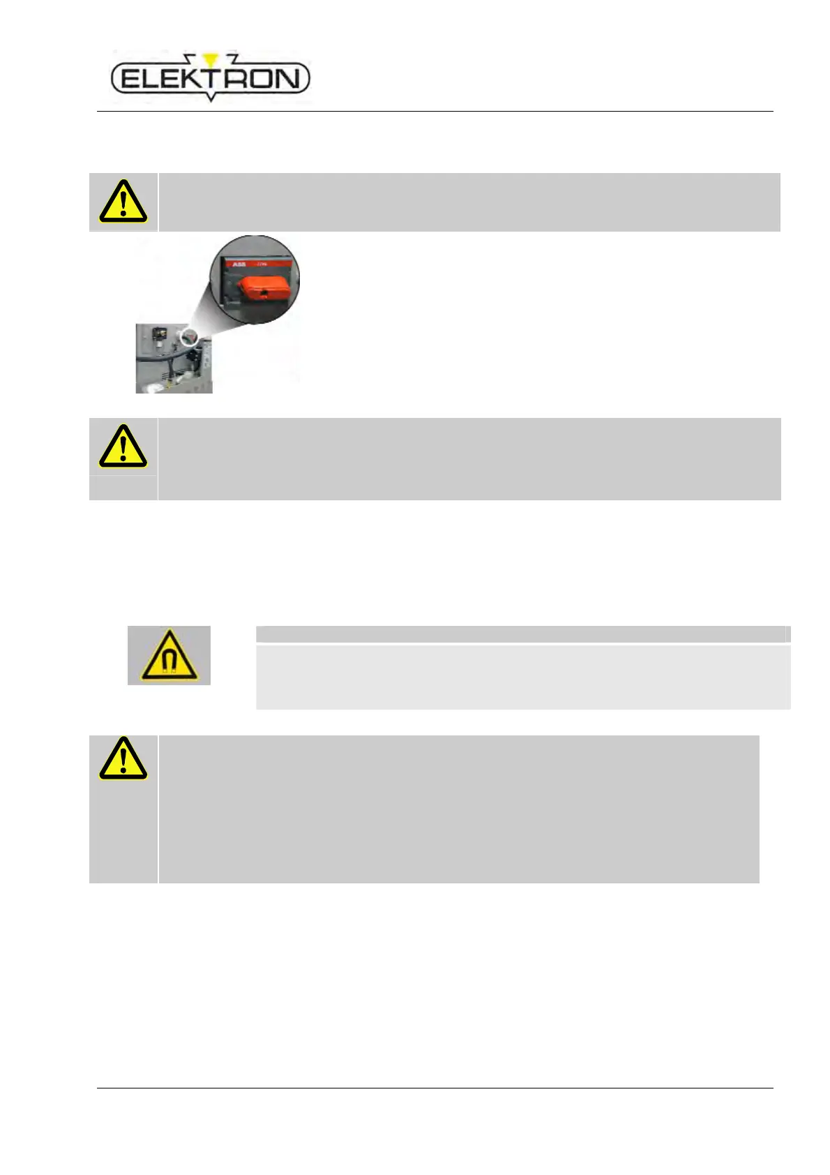 Persons with pacemakers or other magnetisable implants must not approach the working