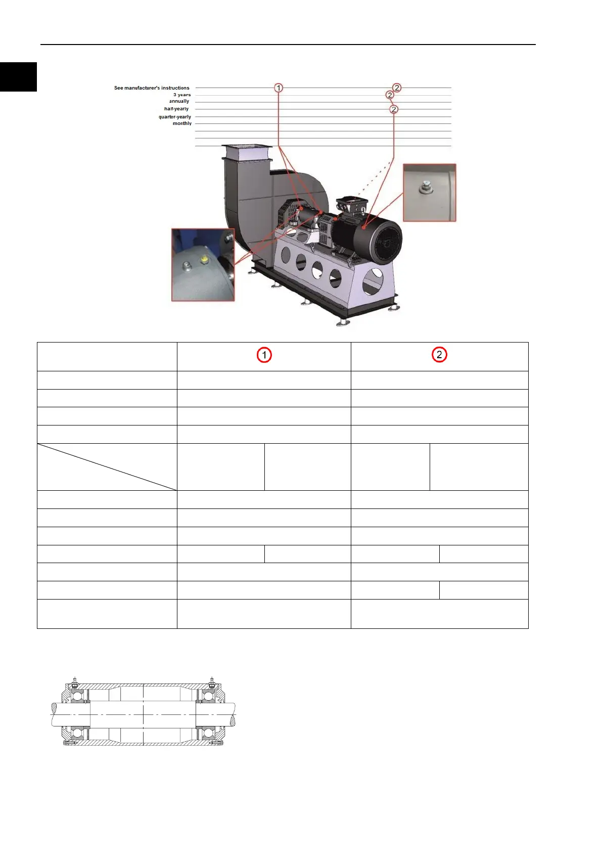 8.8.5.4 Lubrication schedule (Fan with bearing block)