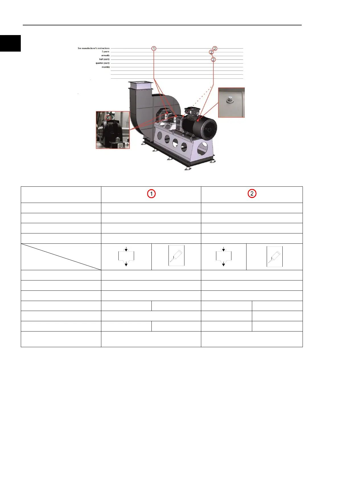 8.8.5.5 Lubrication schedule (Fan with single pedestal bearing)