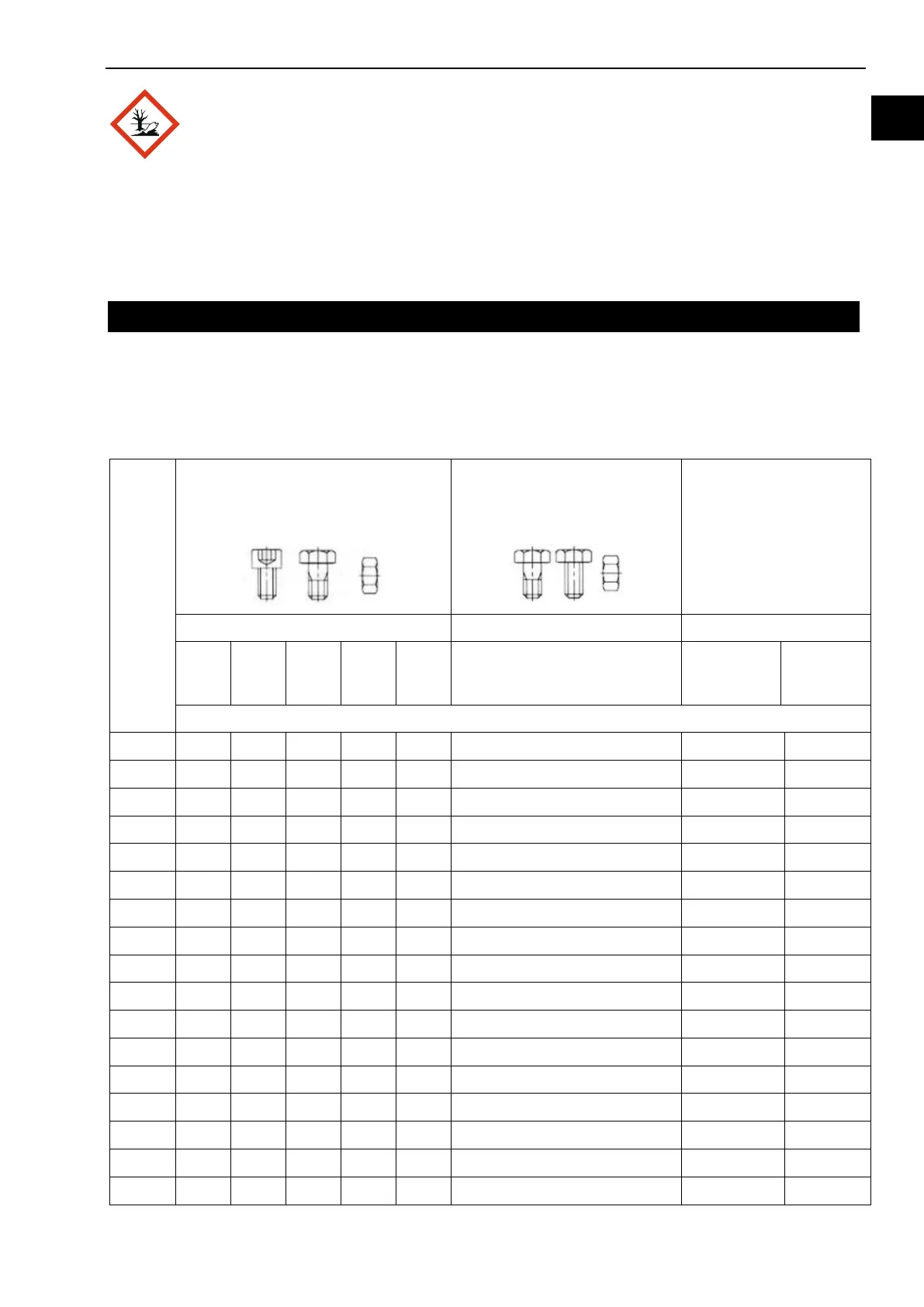 11.1 Tightening torques for fastening bolts