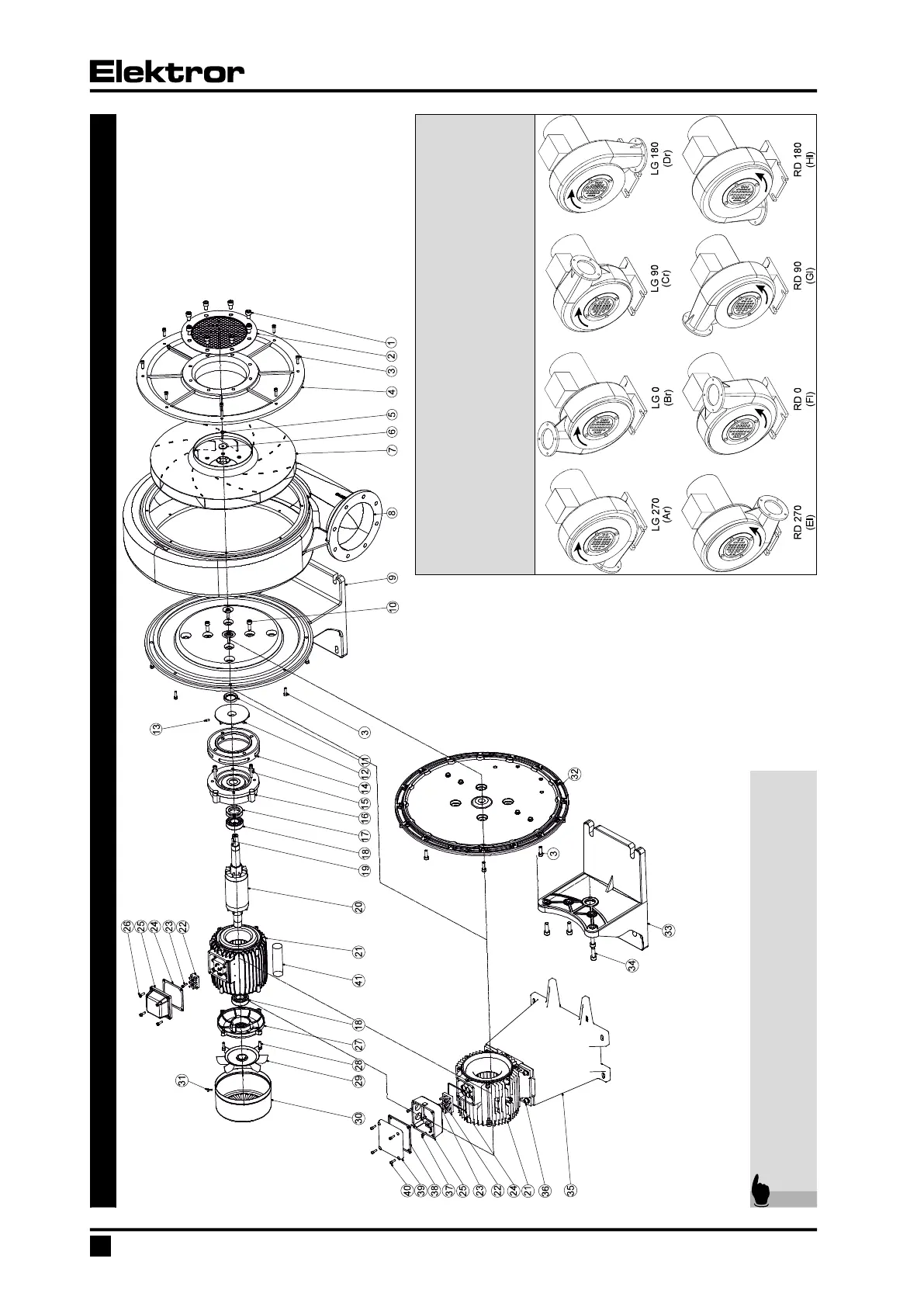 Die Gehäusestellung des Ventilators ist für die Bestellung einiger Ersatztei-