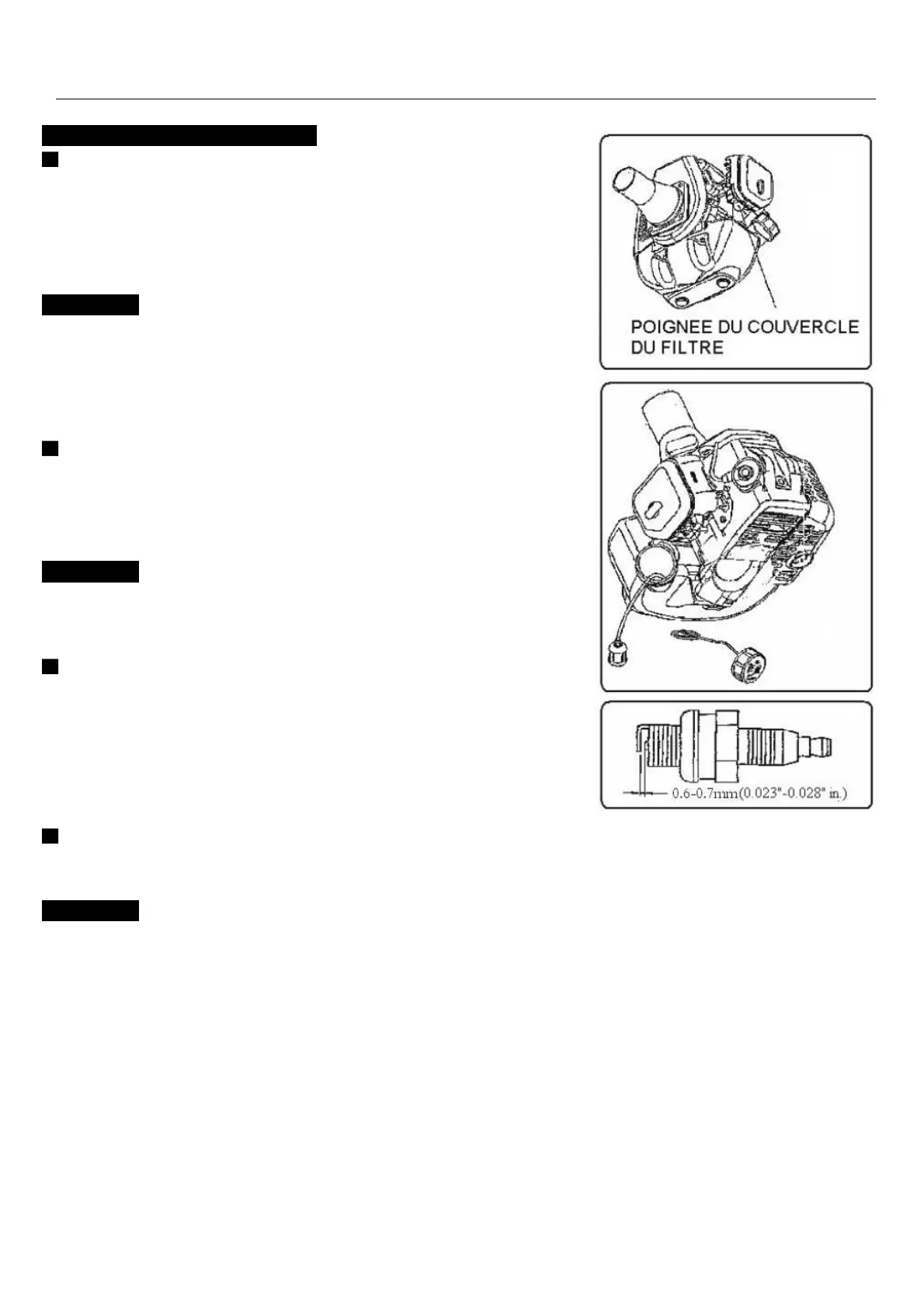 L'écart d'allumage devrait être ajusté à 0,6 ~ 0,7 mm (F15).