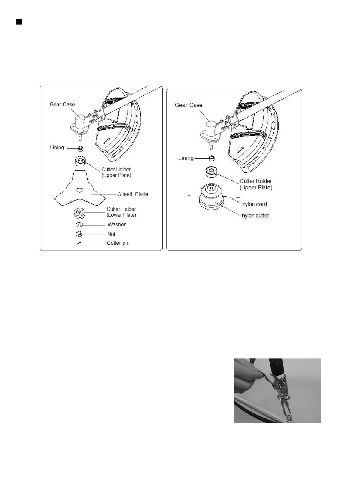Let op: Gebruik altijd het harnas wanneer u de bosmaaier gebruikt.